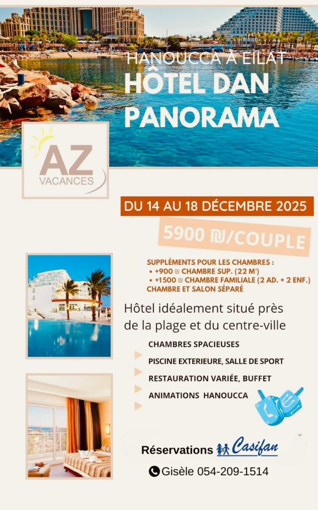 Chambres spacieuses, piscine extérieure, salle de sport, restauration variée, buffet et animations Hanoucca